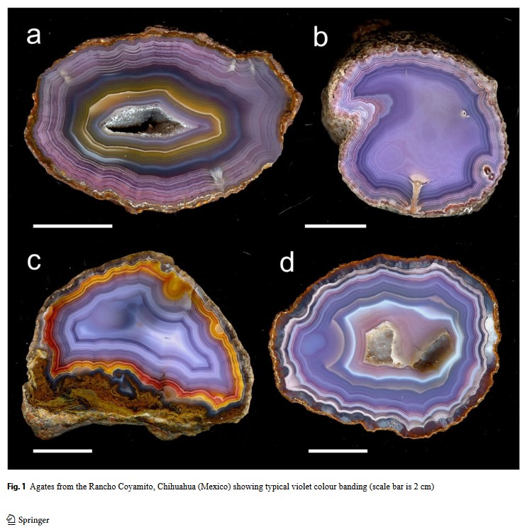 Der bekannte Mineraloge, Achatforscher und www.agates.click - Redaktionsmitglied Prof. Dr. Jens Götze hat mit einigen Co-Autoren einen hochinteressanten wissenschaftlichen Artikel über die Entstehung der violetten Farben in Achaten vom Rancho Coyamito in Mexiko ("Origin of violet colour in agates from Chihuahua, Northern Mexico") veröffentlicht. Dieser Artikel ist über folgenden Link als *.pdf kostenlos (open access) downloadbar: